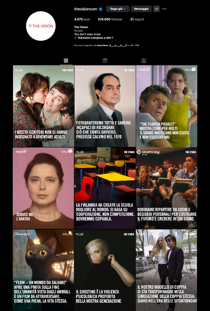 THE VISION è diventato negli anni un punto di riferimento per le nuove generazioni grazie a un tone of voice distintivo e autorevole, e a un'identità grafica immediatamente riconoscibile.